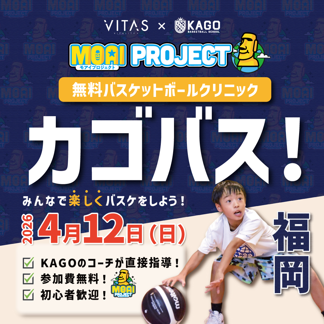 この度、ニュートリションブランド VITAS(バイタス)様と連携し、「モアイプロジェクト」の一環として、無料バスケットボールクリニック「カゴバス!」を実施いたします。